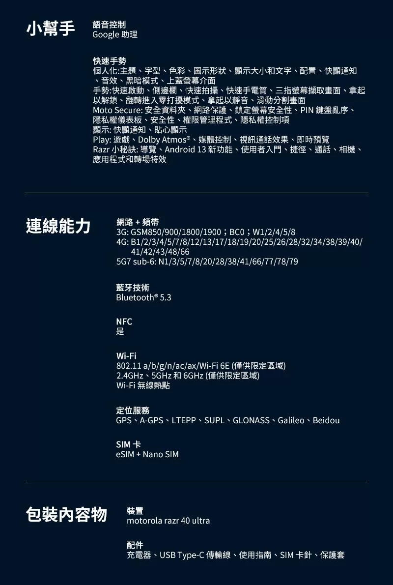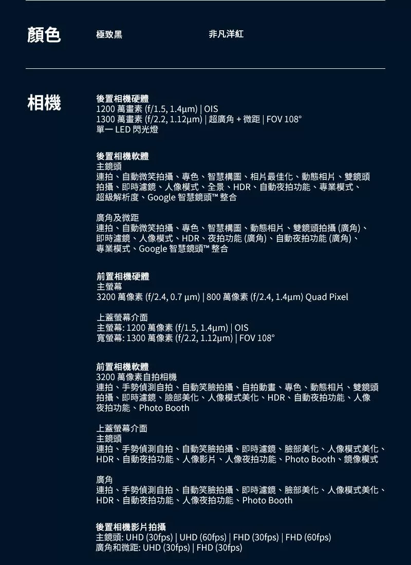 | 功能 | 無線充電,快充功能,NFC,廣角功能 |