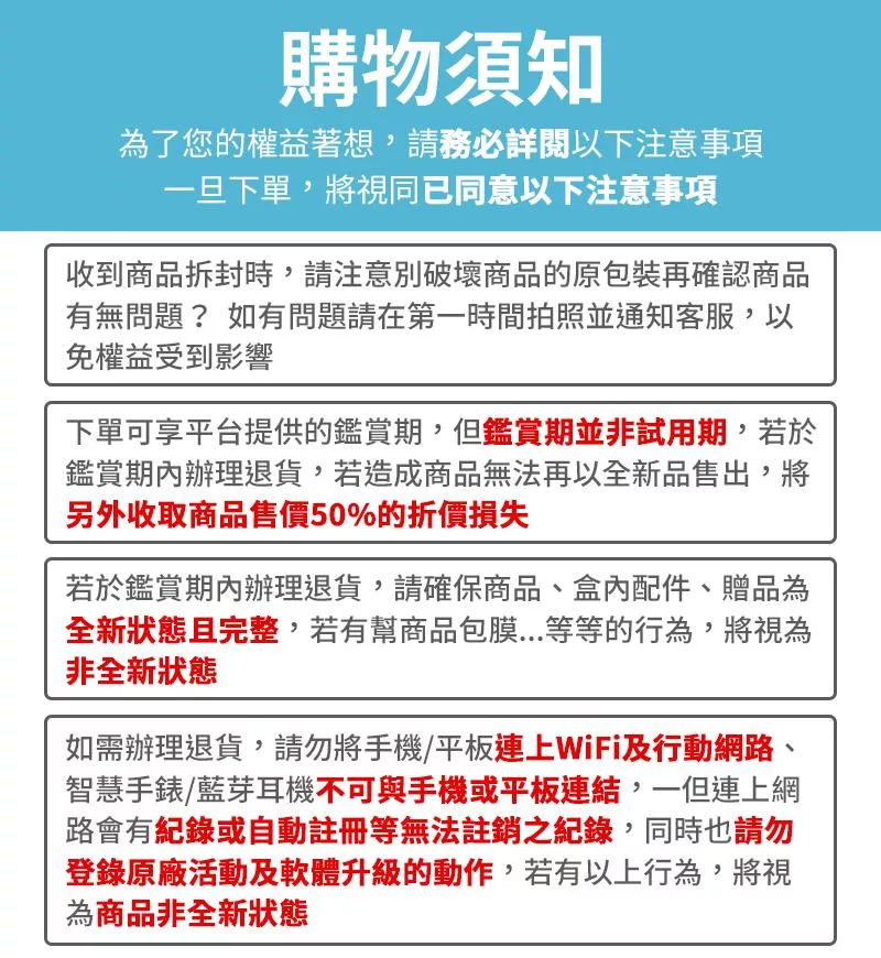 | 配件 | 【附屬配件】※為響應環保,,商品包裝內不含充電頭,愛護地球讓我們一起使世界更美好,1.提供外盒:若無原廠外盒,創宇將提供創新輕量包裝盒。,2.提供配件:充電線,無原廠配件時則由創宇提供充電線,但該附贈品不保證為原廠。(若原廠標配未提供則不附贈),3.耳機因屬於個人衛生用品則無附屬。 |