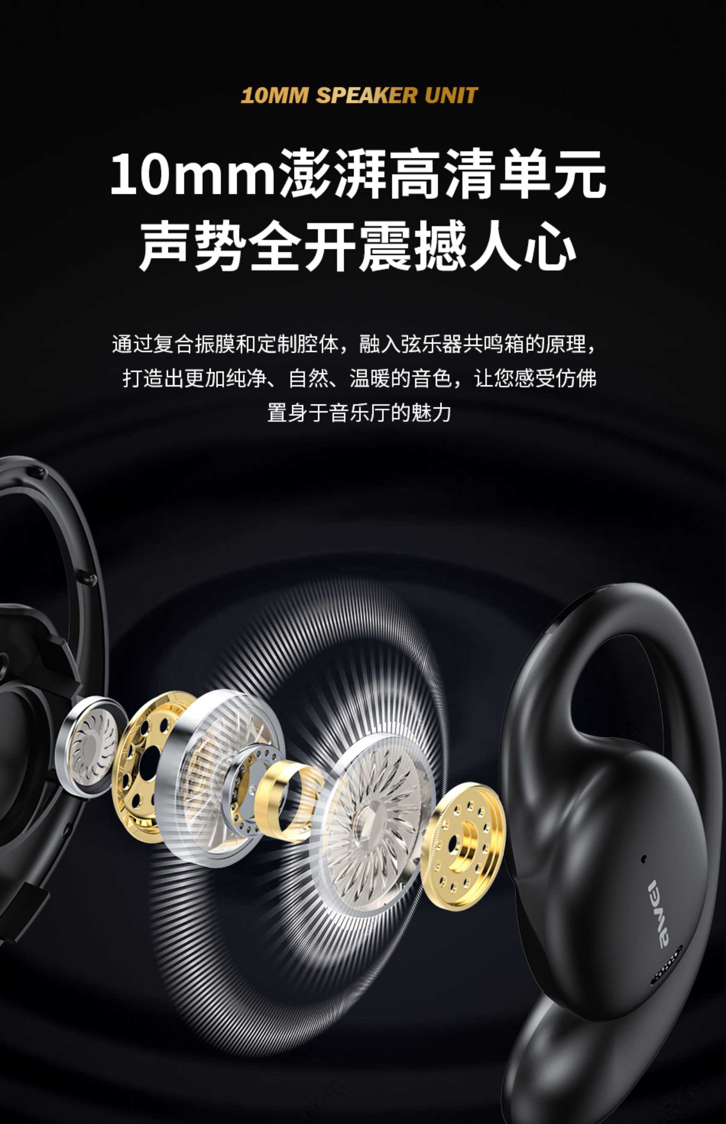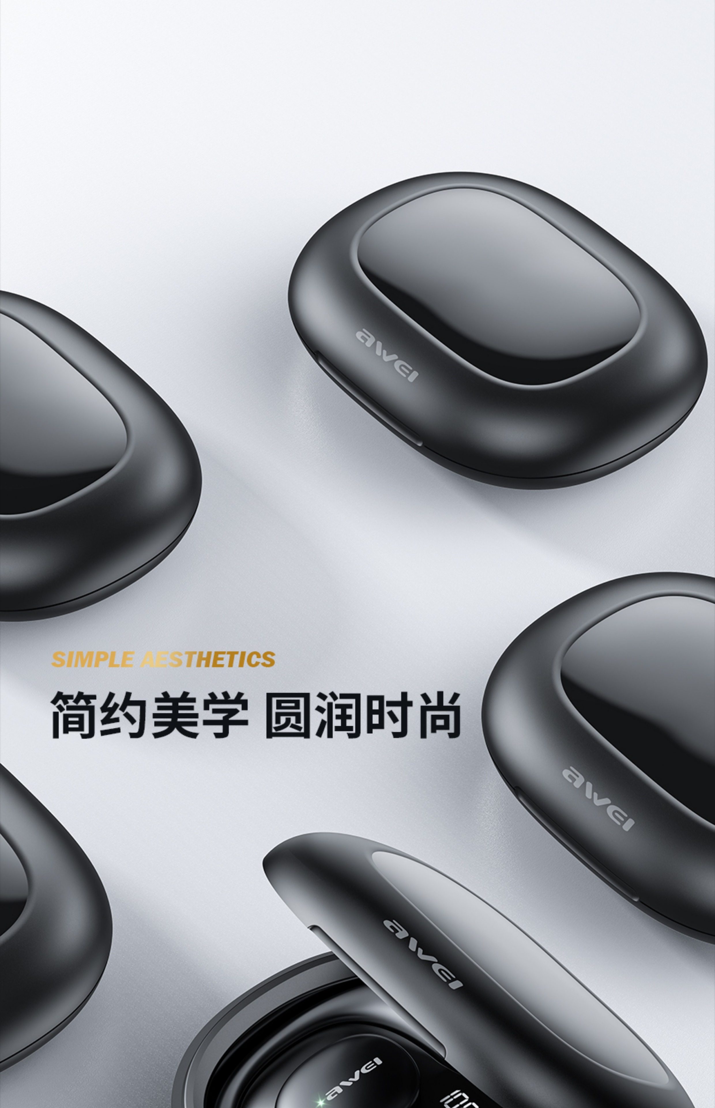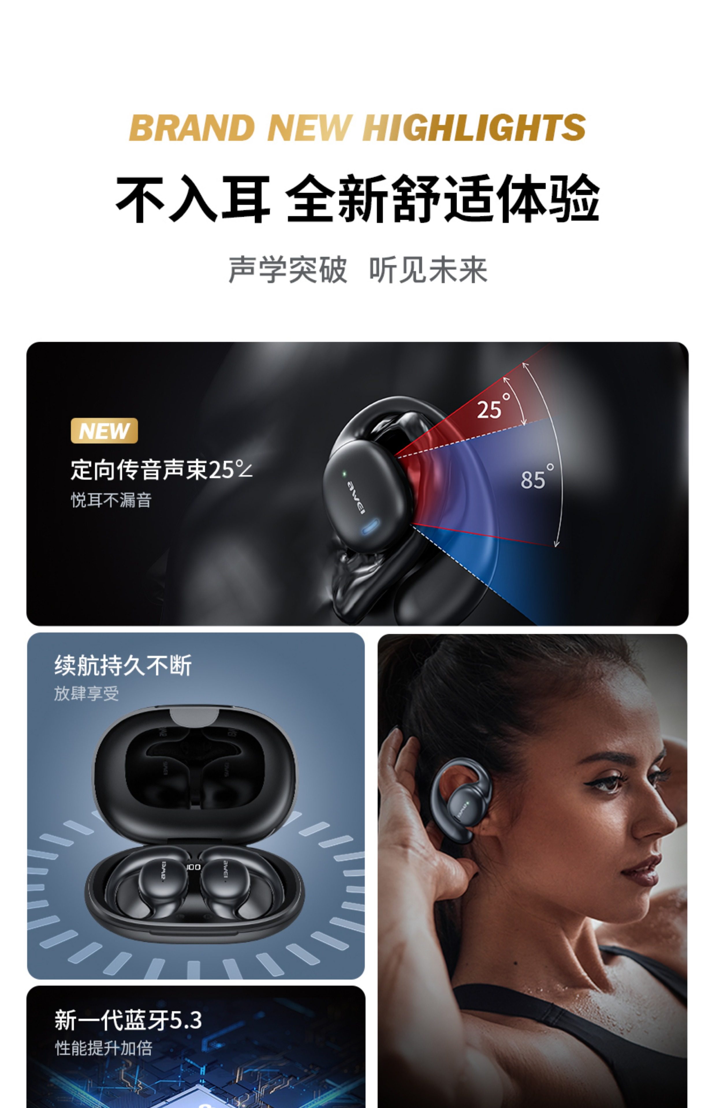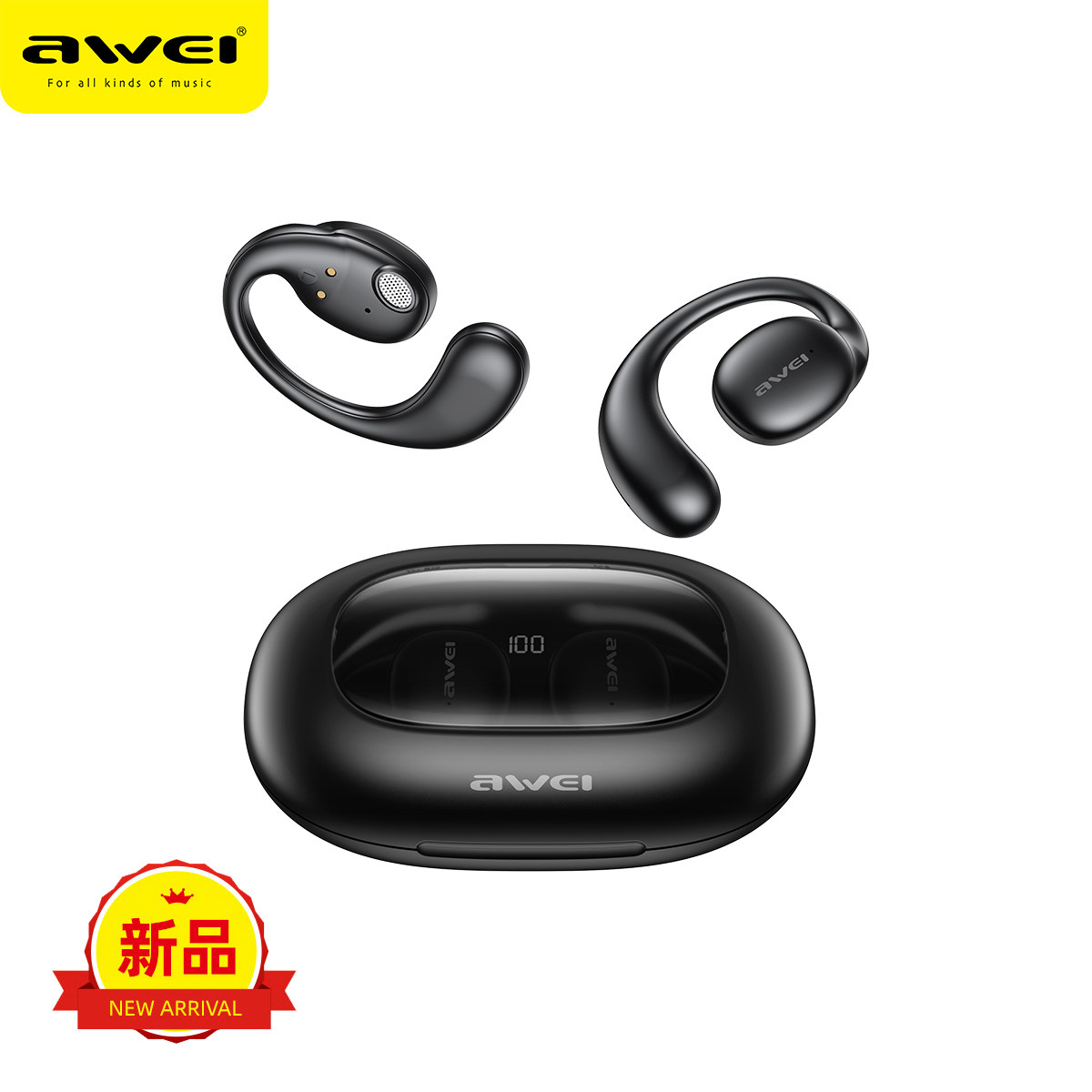 AWEI T80 骨傳導藍芽耳機 5.3版本 耳掛式通話功能 帶電量顯示安全衛生耳機