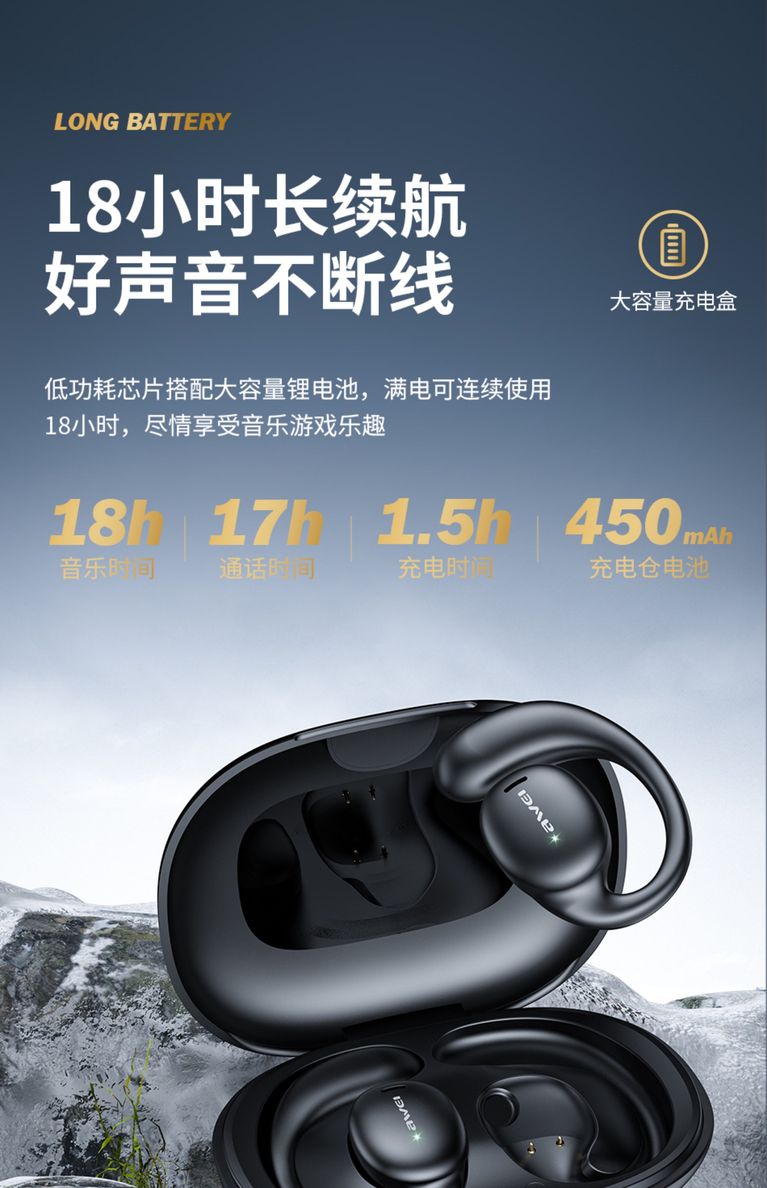 | 商品名稱 | AWEI帶電量顯示安全衛生藍牙耳機 |