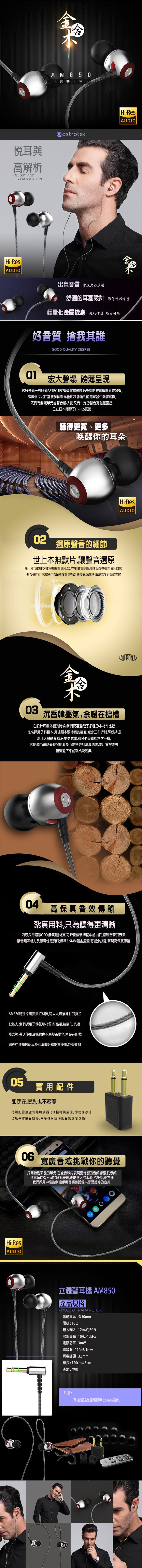 | 內容物 | Astrotec AM850 Hi-Res高解析HiFi入耳式耳機 |