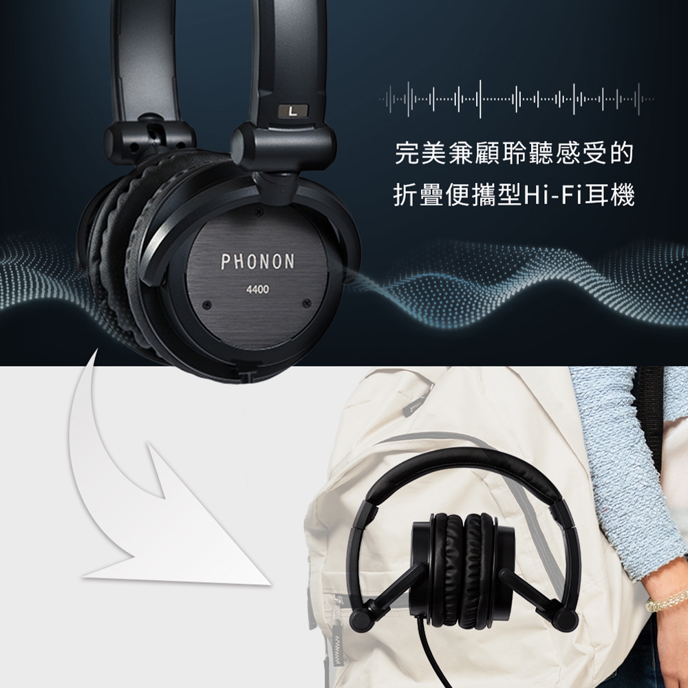 PHONON 4400 專業有線耳罩式耳機,採用密閉式動圈設計,Φ40mm 驅動單體提供 20-22,000Hz 寬廣頻率響應與 100dB 靈敏度,46Ω 低阻抗適合日常音樂聆聽。黑色系時尚外型,260g 輕盈舒適,配備 1.8m 線材與便攜袋,3.5mm 輸入端子相容 Windows、MAC、Android、iOS 多平臺。線控功能方便操作,中國製造,一年保固,完美選擇音樂愛好者的高品質有線耳機。