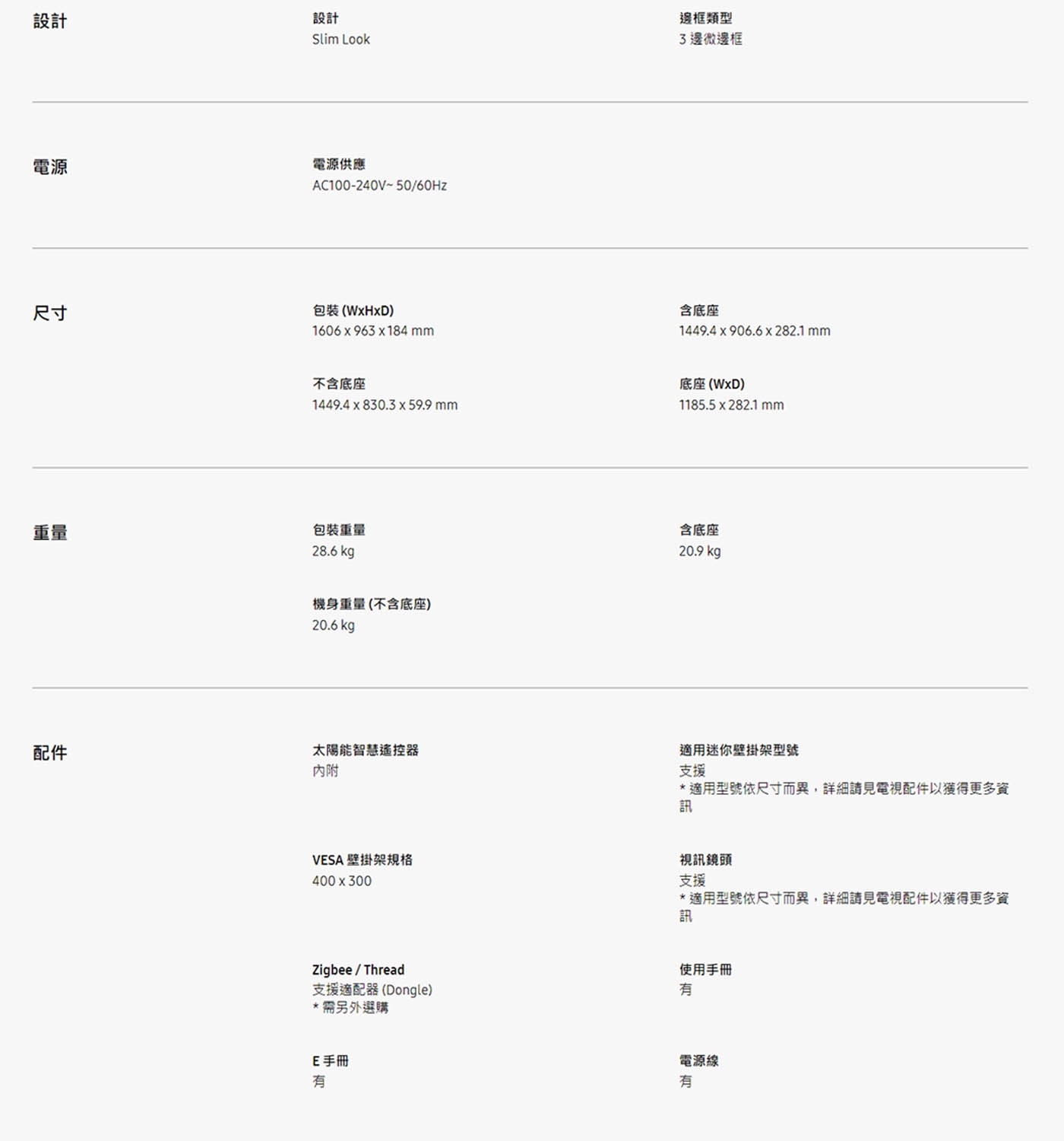 | 尺寸(寬x高x深) | 詳見規格表 |
