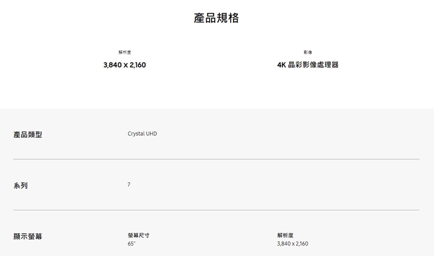 | 型號 | UA65CU7700XXZW |