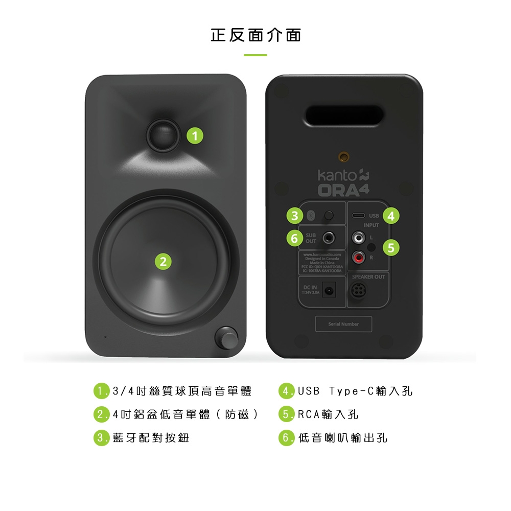 Kanto ORA4 書架型電腦喇叭 藍芽5.0 桌面音響 140W峰值輸出 USB Type-C輸入 霧面黑/白高解析度喇叭