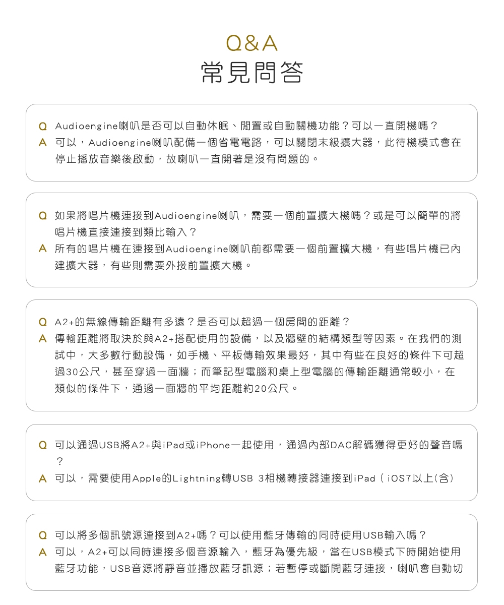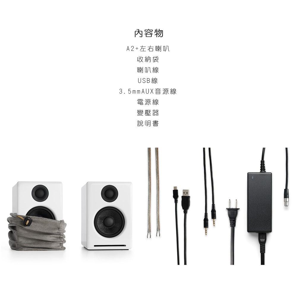 | 配件 | 喇叭線、USB線、3.5mmAUX音源線、電源線、變壓器、說明書 |