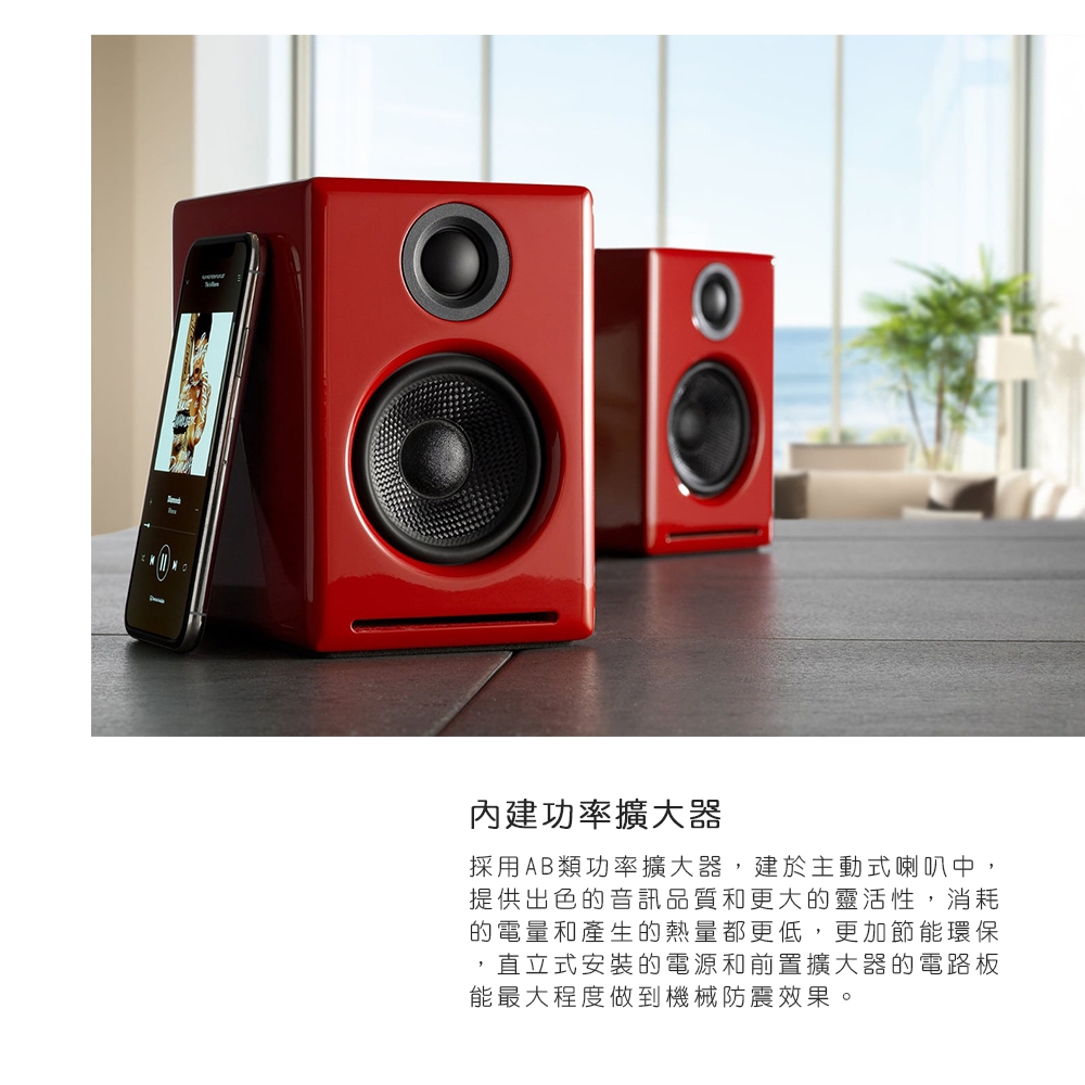 Audioengine A2+RD 藍芽書架型喇叭 紅色 多媒體電腦喇叭 高音質 30W 輸出功率 藍芽5.0 aptX 2年保固