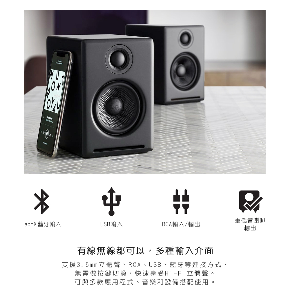 Audioengine HD3 無線主動式藍芽書架喇叭 白色款 - 高解析立體聲多媒體喇叭 HD3-WH 藍芽5.0 aptX HD 支援USB/RCA輸入13,800