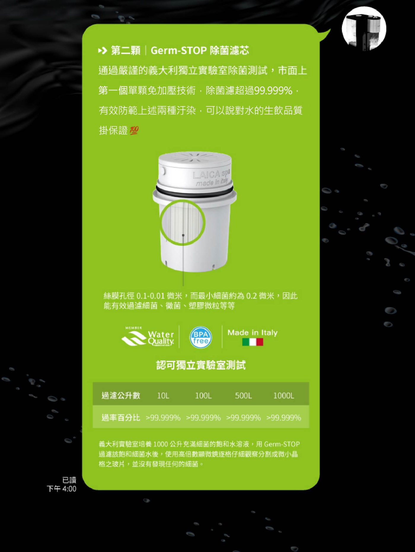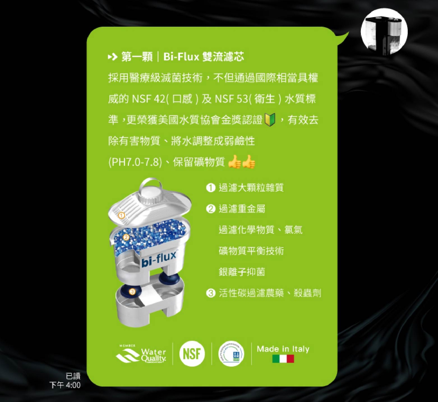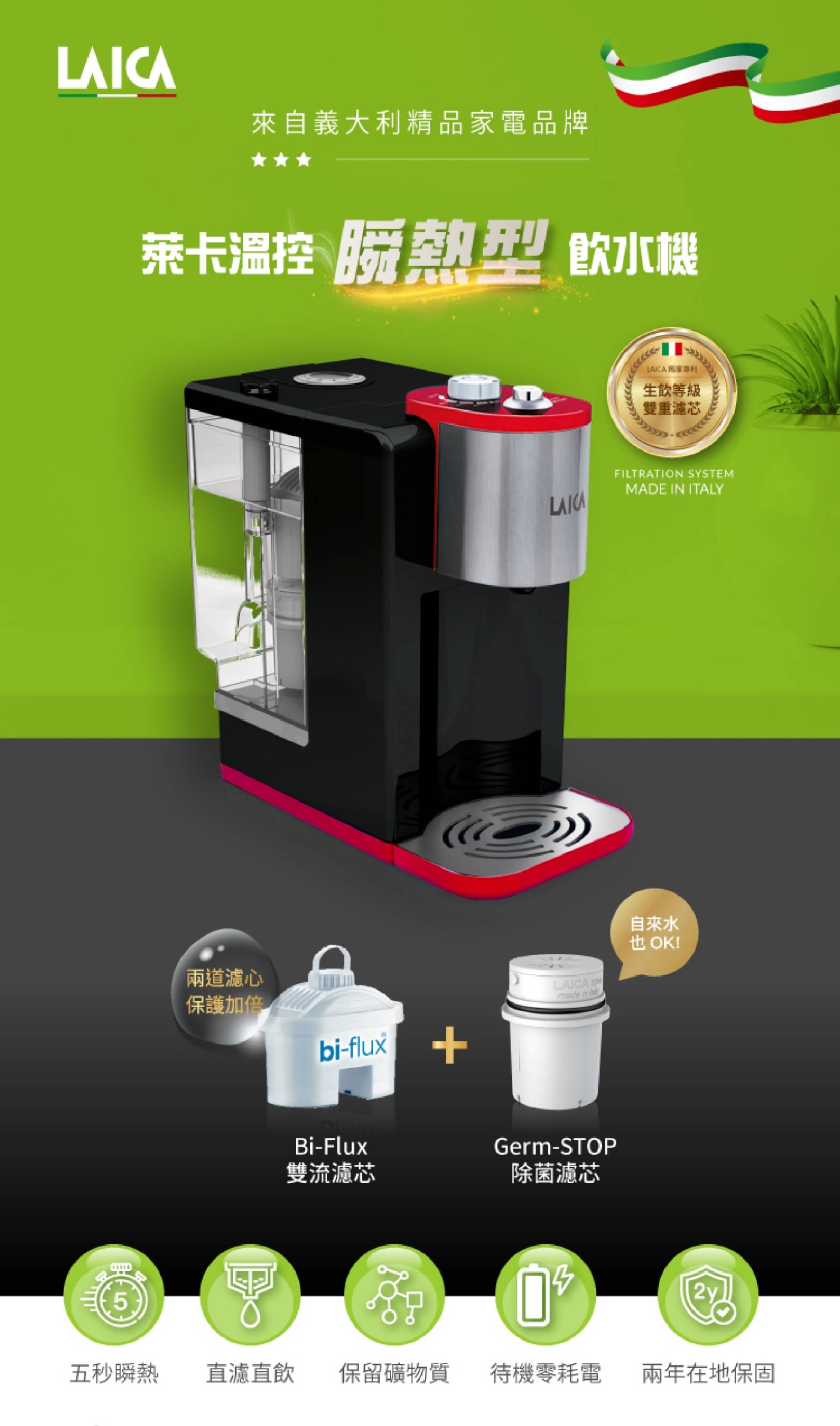 | 配件 | bi-flux雙流通用濾芯*1、GermSTOP除菌濾芯*1 |