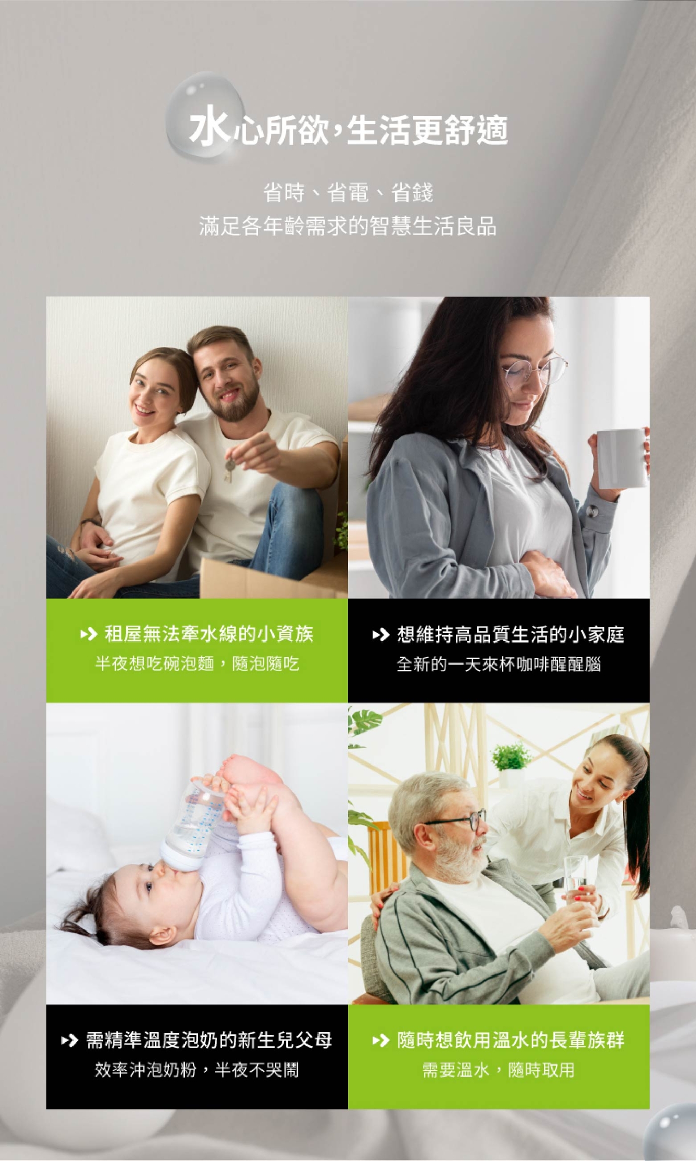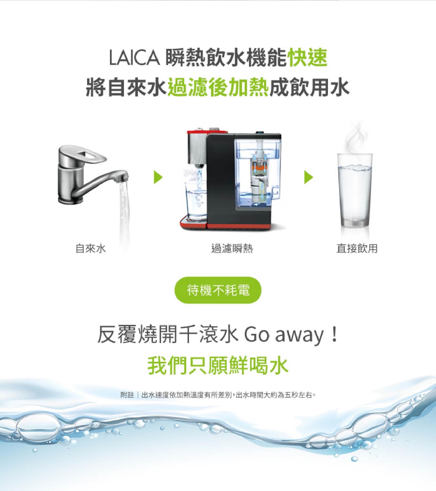 | 溫水儲水容量 | 瞬間加熱無儲水,水箱容量3L |