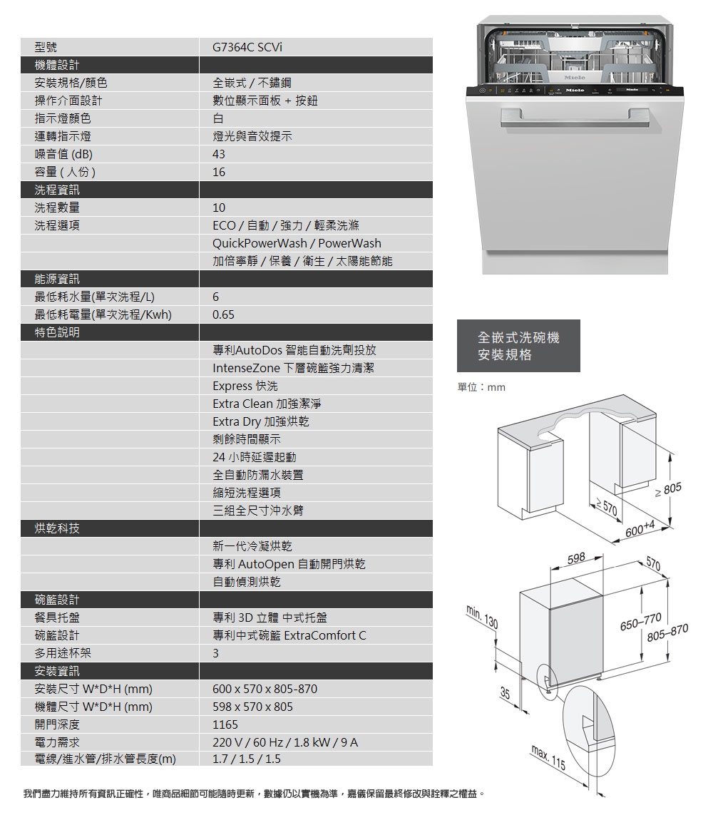 | 尺寸 | 機器大小:W598* D570*H805 mm |