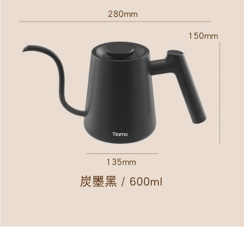 Tiamo 電子溫控細口壺電子溫控壺 600ml 110V - 黑色(HG2440)