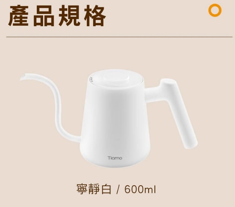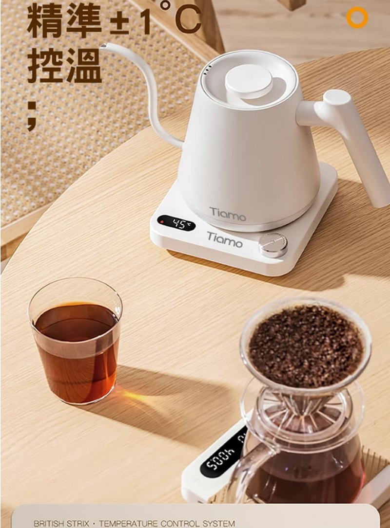 【Tiamo】電子溫控細口壺電子溫控壺 600ml 110V - 黑色(HG2440)