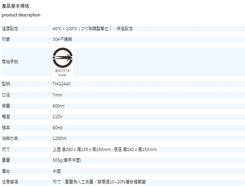 TIAMO HG2445 304不鏽鋼電熱水壺 1L以下快速沸騰家用保溫壺 110V 1000W以上 BSMI認證