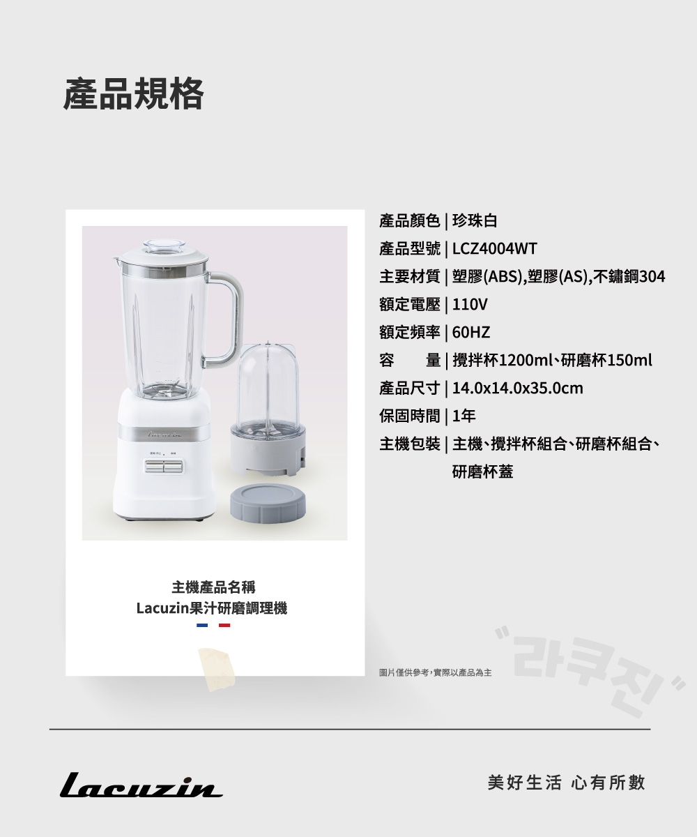 | 配件 | 攪拌杯組合、研磨杯組合、研磨杯蓋 |