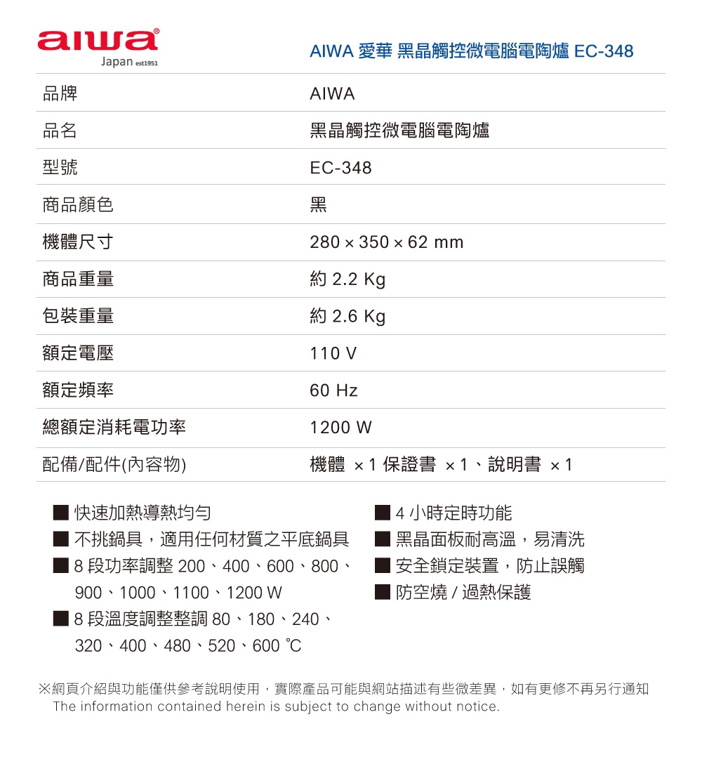 | 產品重量 | 約2.2KG |