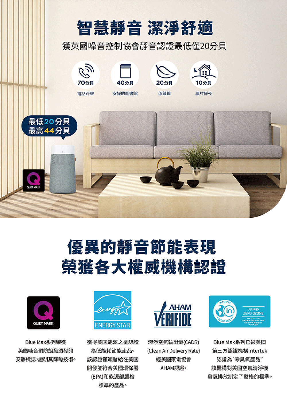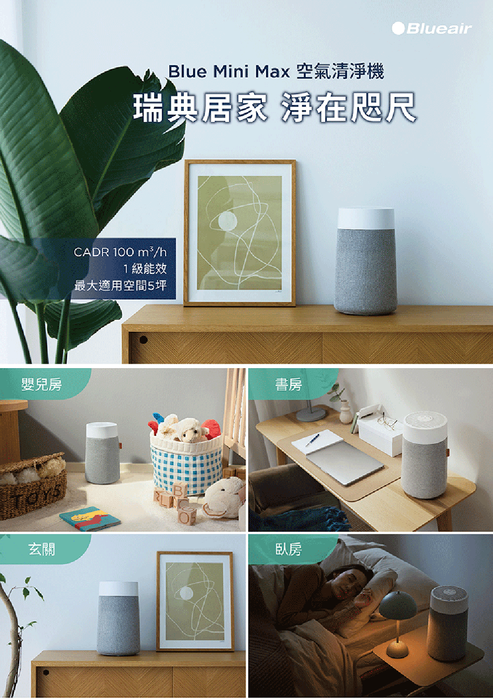 Blueair MiniMax 空氣清淨機 活性碳濾網 白色系 6.3坪適用 低噪音20-44dB 省電10W 第一級能源效率