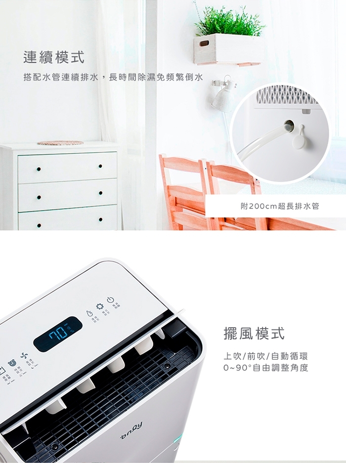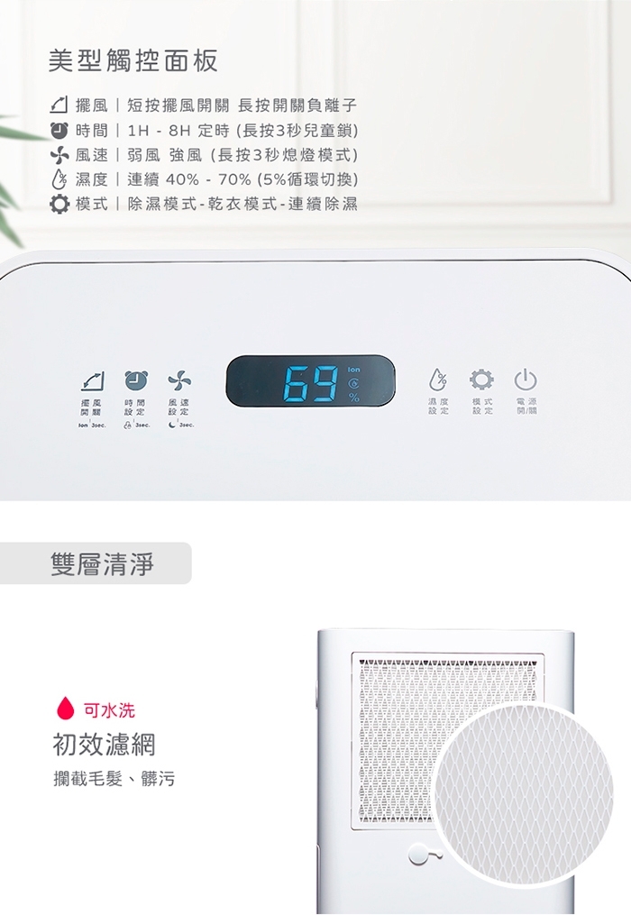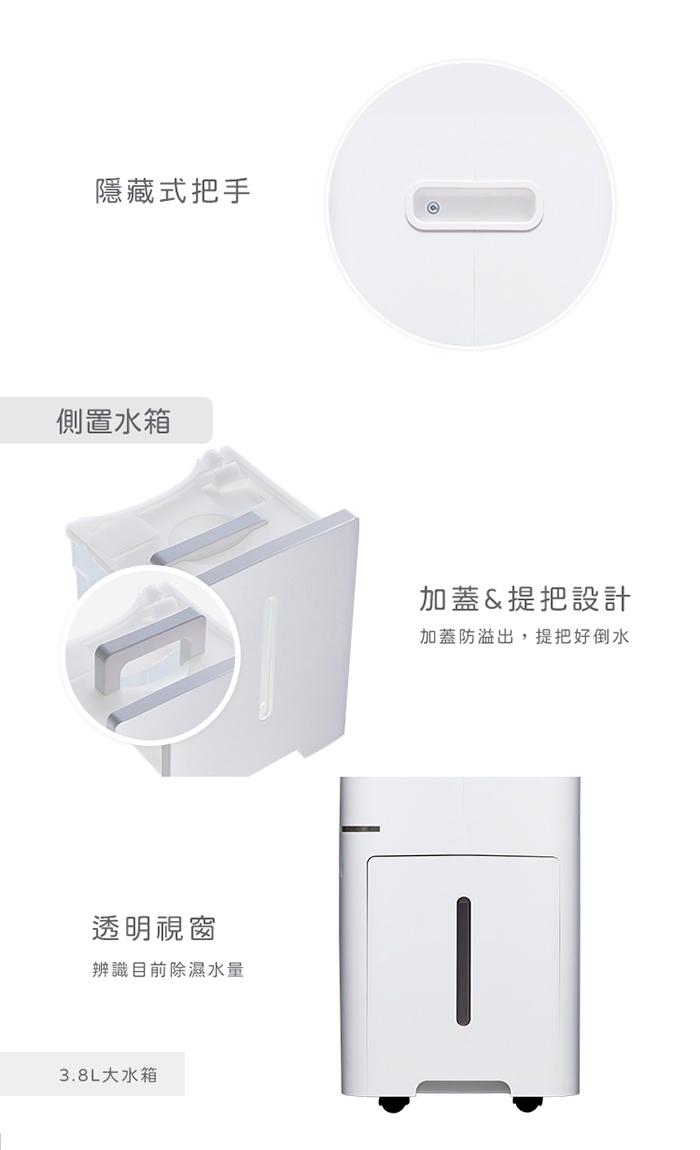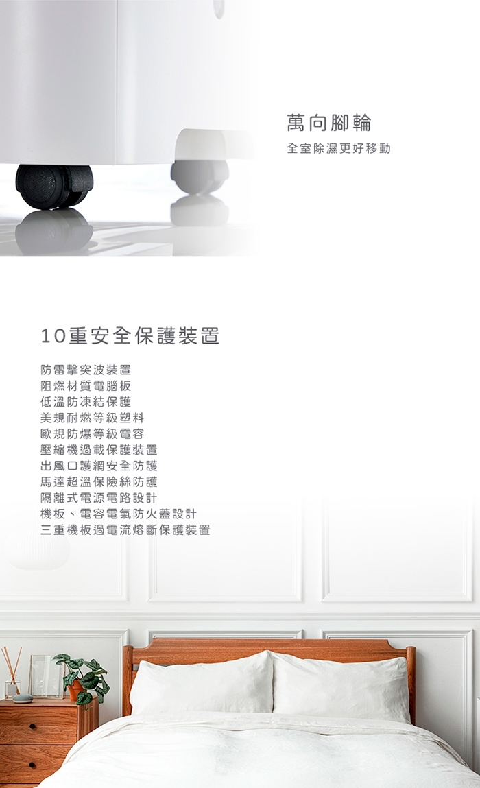 | 注意事項 | 1.文案和圖片因網頁呈現不同而略有不同,若有變動請依照實際商品為準,如無法接受差異請勿拆封使用,並申請退貨服務。2.本產品一經拆封使用後,不得辦理退貨,使用前請先確認機型是否符合需求。3.商品出廠時有經過檢驗測試,如收到商品之水箱潮濕,屬於正常現象。4.退/換商品時請保持商品完整性,商品包裝需完整回收;並確定商品內部沒有殘留水,必要時將酌收商品折舊費。5.商品不含安裝,亦不含拆箱定位服務。6.收到商品第一次使用前,請直立放置靜待二小時後再插電。7.可移動家電(如除濕機、清淨機、移動空調及咖啡機等),電源線可能因多次纏繞、拉扯造成自然損耗,而有接觸不良的現象,產生用電安全隱患。建議在移動、收整或使用除濕機時,注意減少電線的纏繞、拉扯或踩踏。如有“接觸不良”狀況發生時,應立即停止使用,並聯絡原廠客服。 |