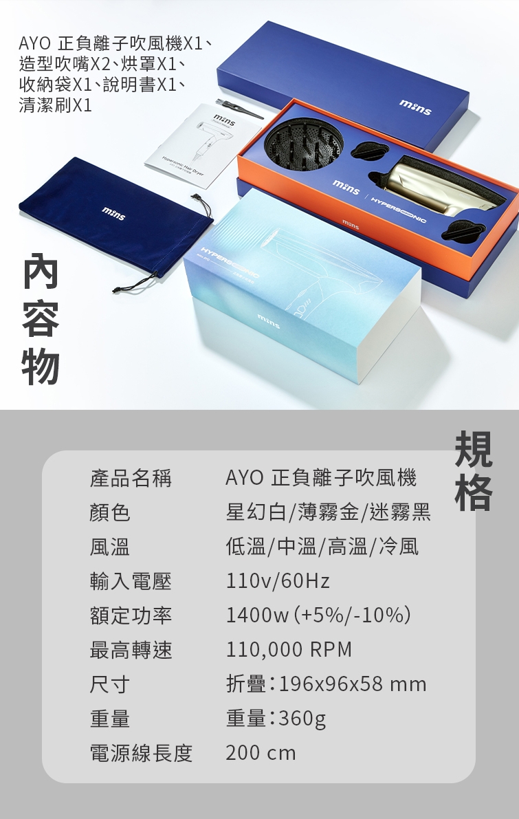 | 特殊功能 | 冷風, 負離子, 溫控 |
