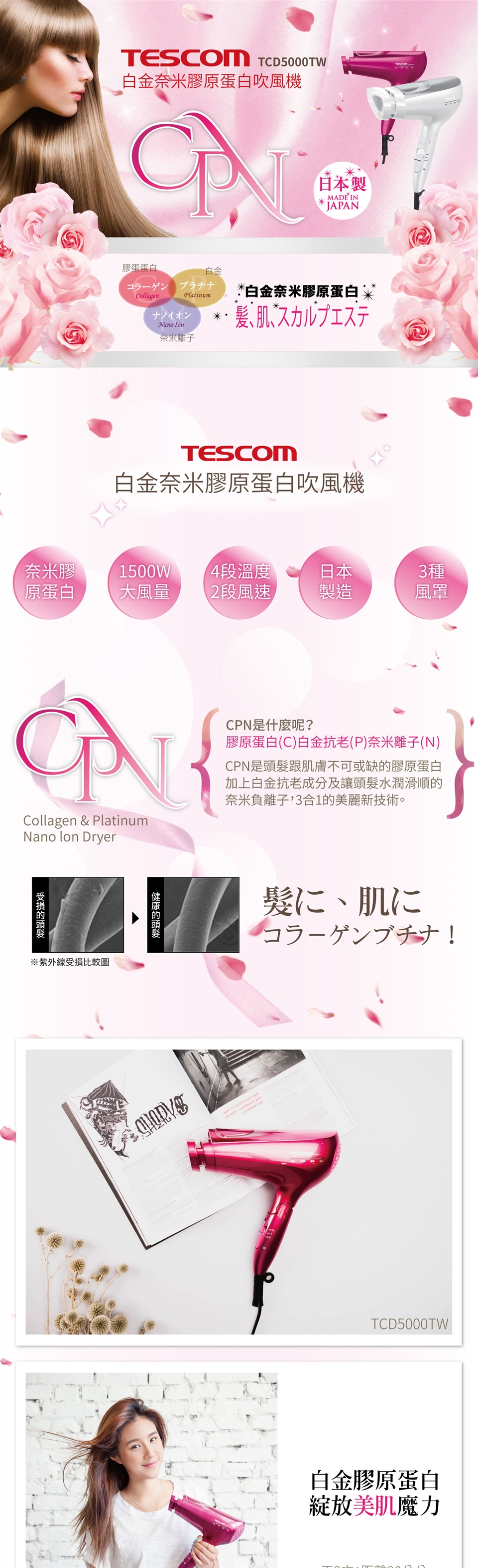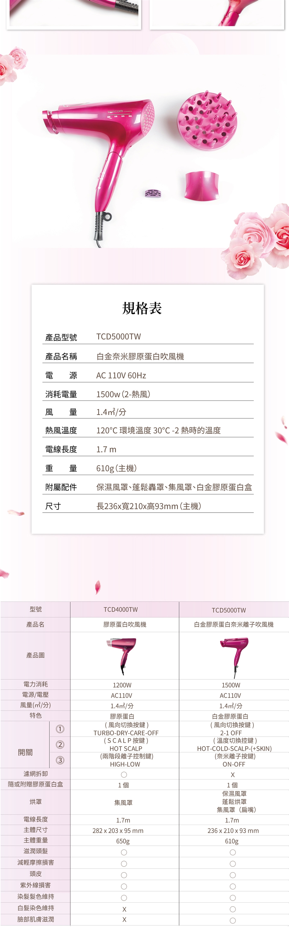 | 商品名稱 | TESCOM 白金奈米膠原蛋白吹風機 TCD5000TW |