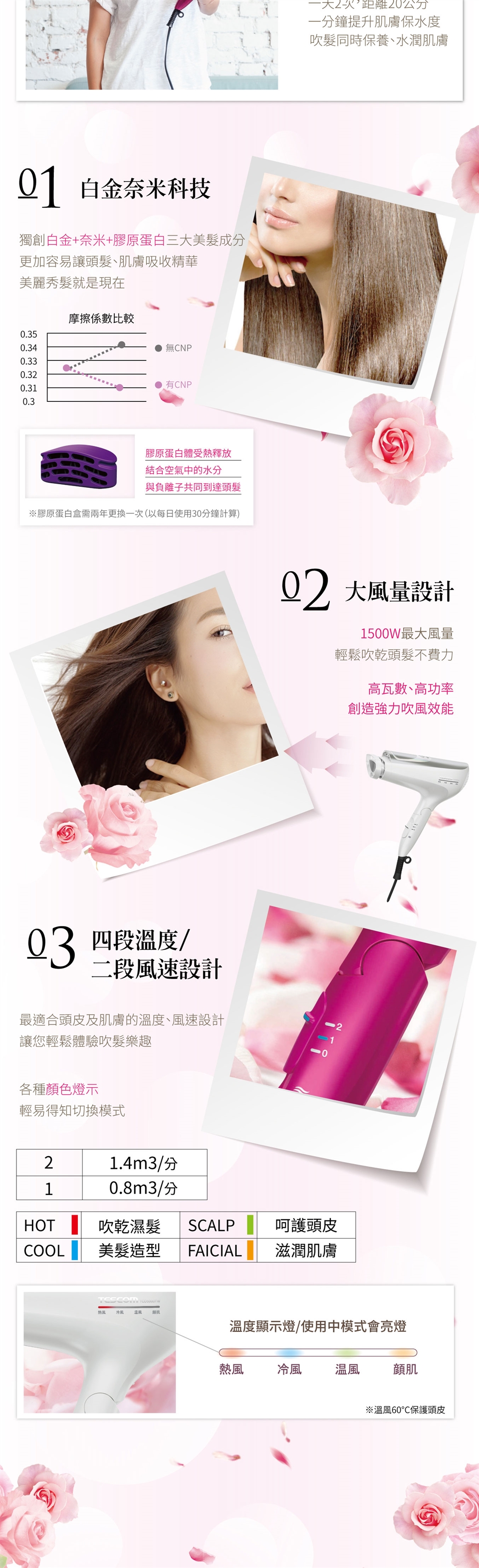 | 特殊功能 | 膠原蛋白,負離子,機身可折疊 |