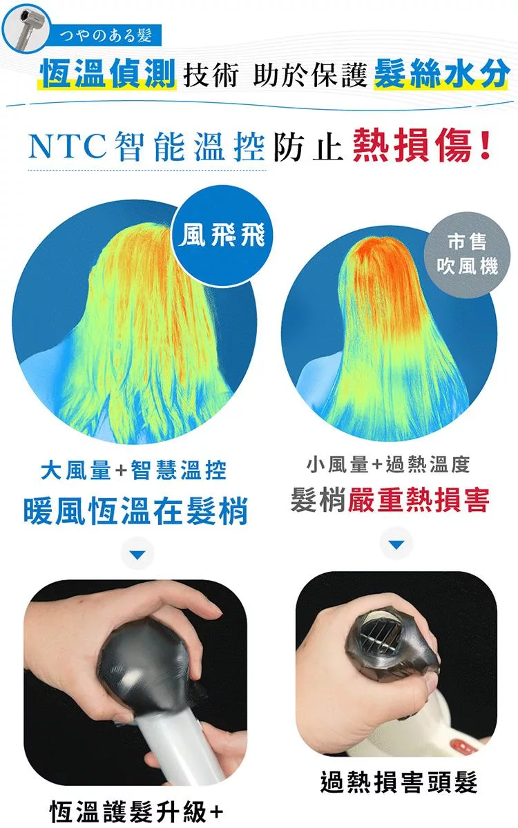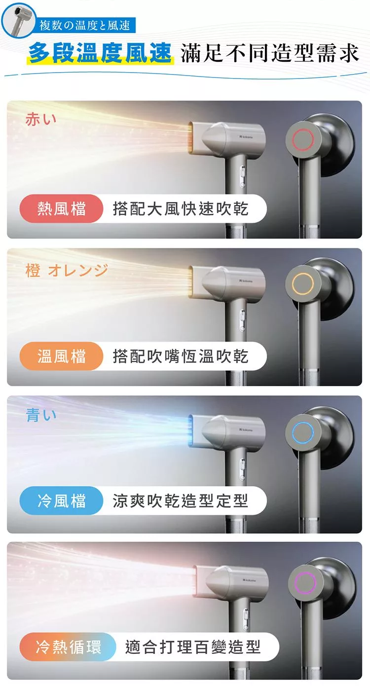 kokomo KO-IH2335 風飛飛 日本負離子高速吹風機 智慧溫控 1200W 四段溫度 灰銀色/珍珠白 快速乾髮神器