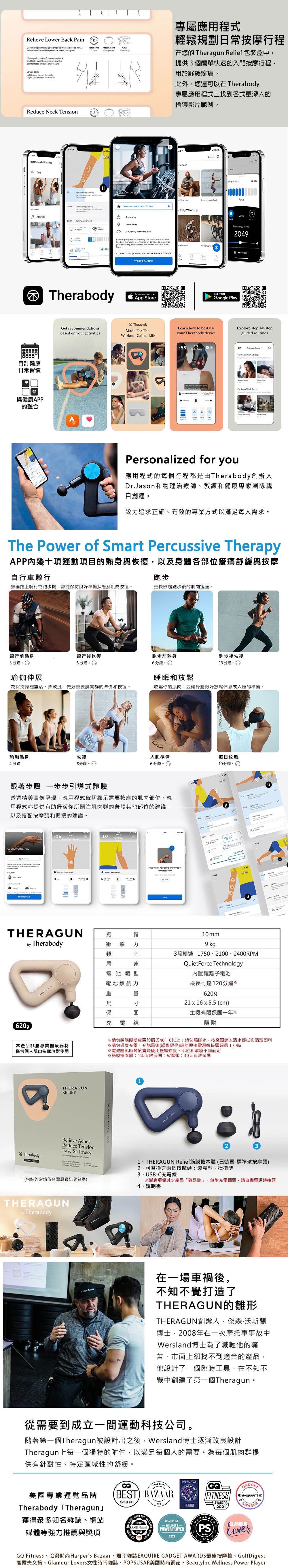 THERAGUN Relief專業級筋膜槍 (USB-C充電/3款按摩頭/10mm振幅)