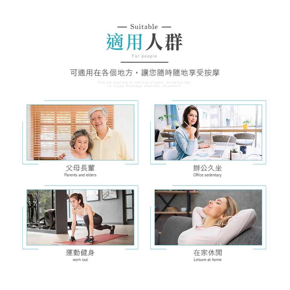 | 按摩部位 | 頸部,肩部,手臂,背部,腰部,大腿 |