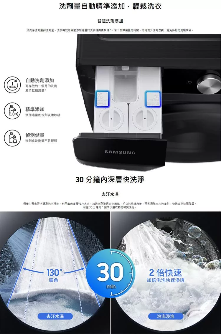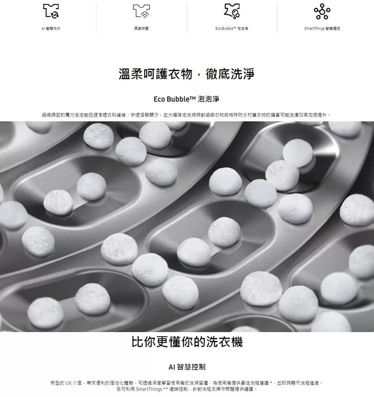 | 商品名稱 | SAMSUNG三星 17KG變頻蒸洗脫烘滾筒洗衣機 WD17T6500GPTW |