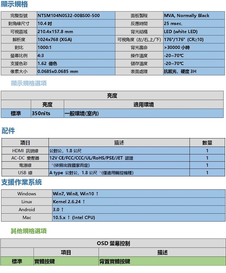 | 型號 | NTSM104N0S32-00BS00-500 |