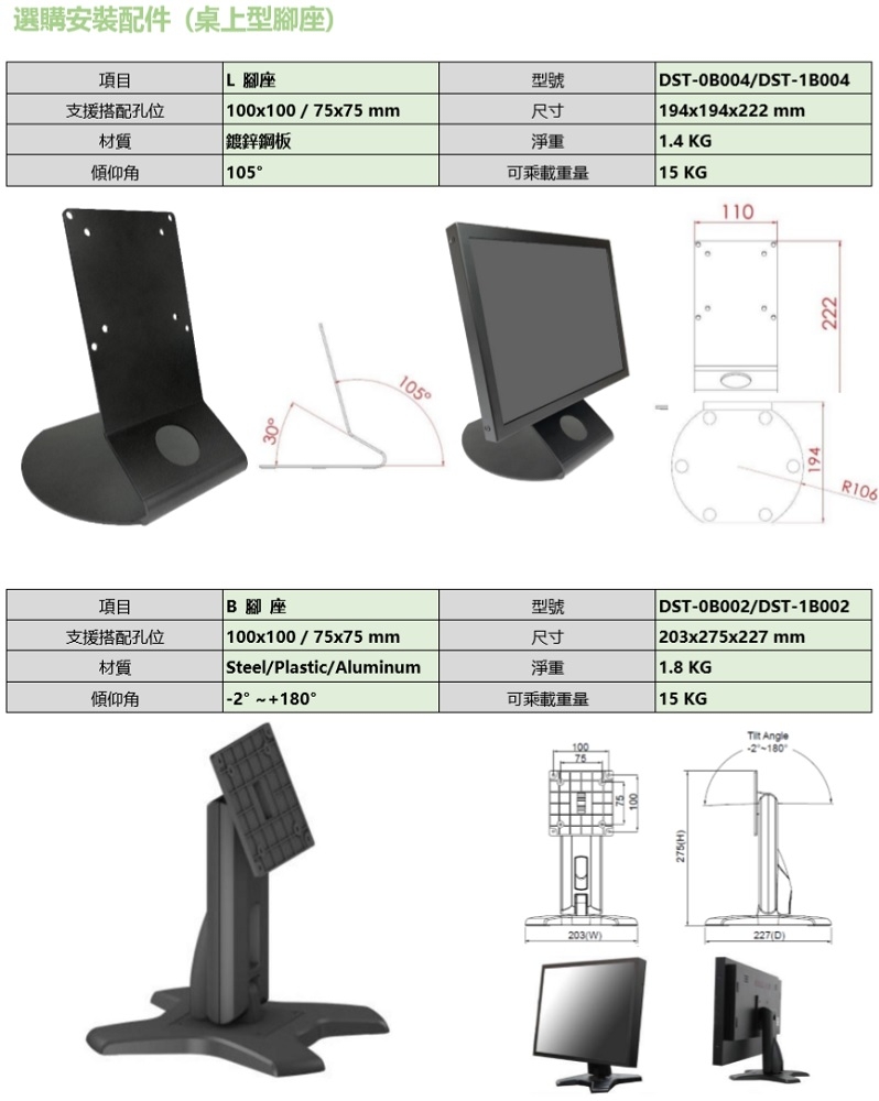 | VESA壁掛 | 不需配件, B腳座, L腳座, 壁掛架, 支架組 |