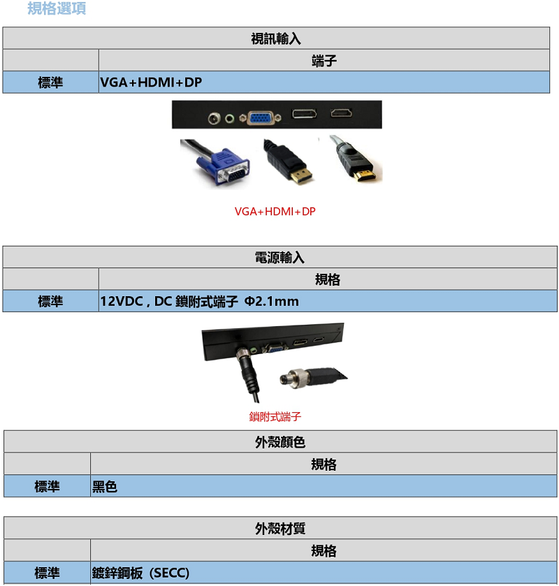 | 訊號輸入介面 | D-Sub(VGA), DVI |