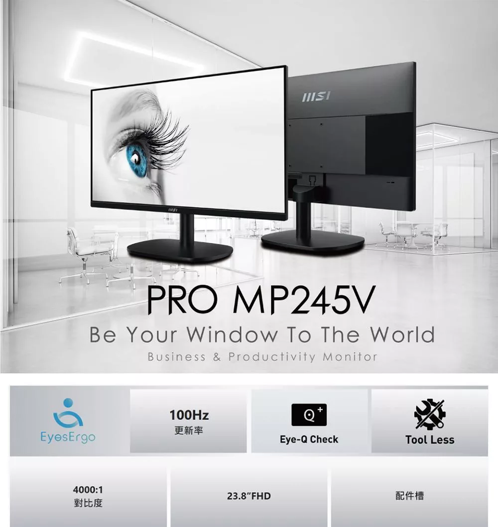 MSI 微星 MP245V 23.8 吋 IPS 面板 Full HD 顯示器 75Hz 窄邊框 高畫質 高效能