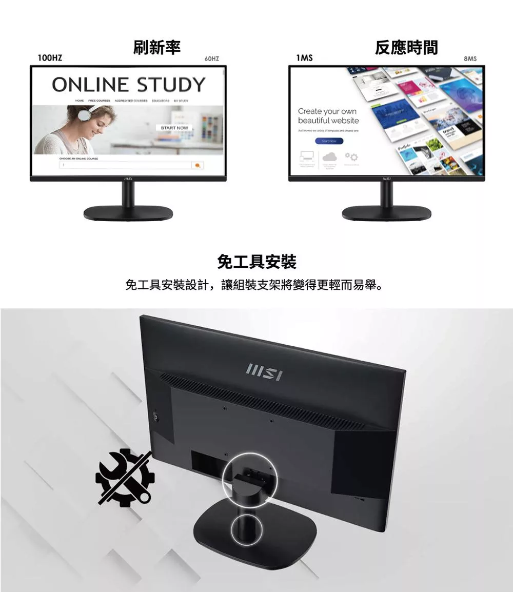 MSI 微星 PRO MP252L 1920x1080 IPS 面板 LCD 顯示器 100Hz 11ms 高畫質