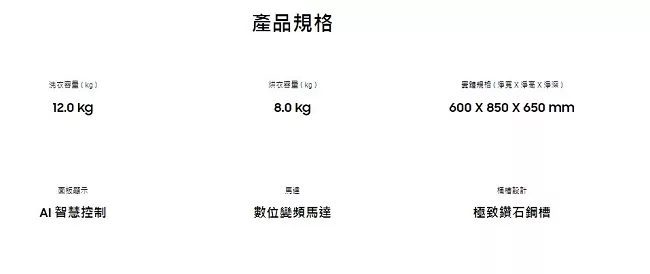 | 實際洗衣容量(kg) | 12 |