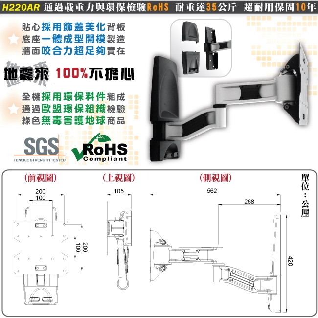 | 適用範圍 | 22吋, 24吋, 27吋, 32吋, 37吋, 30吋, 38吋, 39吋, 40吋, 42吋, 43吋, 46吋, 47吋, 48吋, 49吋, 50吋, 52吋, 55吋 |