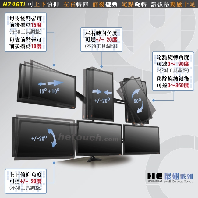 | 定點旋轉 | 0~90度 自由調整 (卸除旋控鎖後可轉360度) |