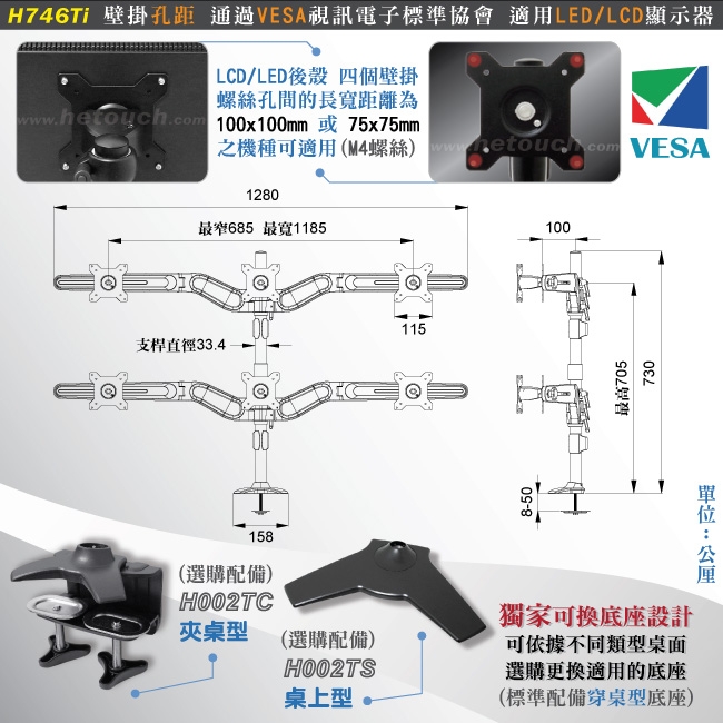 | VESA安裝孔位 | 100 x 100 / 75 x 75 公厘適用 |