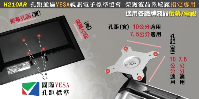 | VESA安裝孔位 | 100 x 100 / 75 x 75 公厘適用 |