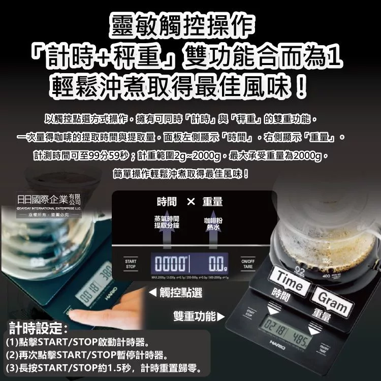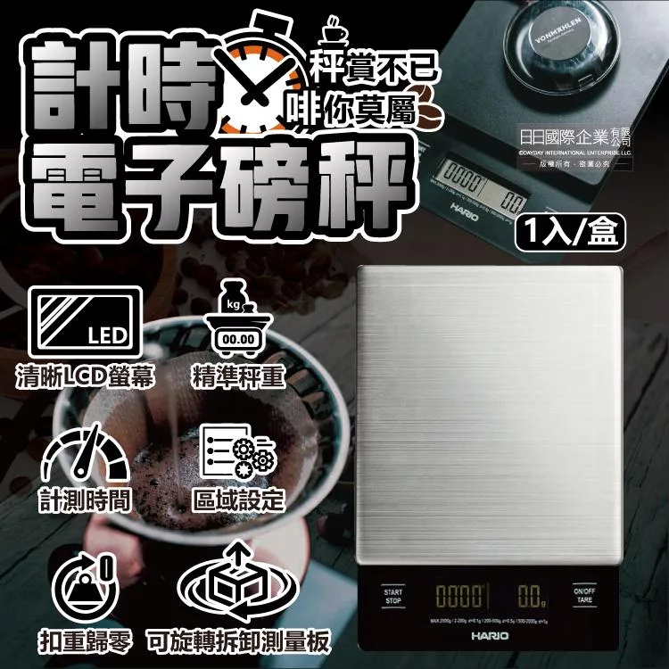 HARIO VSTMN-2000HSV1 專業手沖咖啡電子秤,專為咖啡愛好者設計,觸控點選操作與區域設定功能,提升測量精準度,讓新手輕鬆入門沖煮手沖咖啡。明亮LCD螢幕搭配質感黑麵板與鋁合金測量板,簡約時尚高顏值。支援計時至99分59秒與秤重2g~2000g雙重功能,左側顯示時間、右側顯示重量,一次掌握咖啡提取時間與劑量,讓手沖咖啡沖煮變得簡單專業。無論日常沖泡或專業調校,這款HARIO手沖咖啡秤都是咖啡迷的必備電子秤工具。