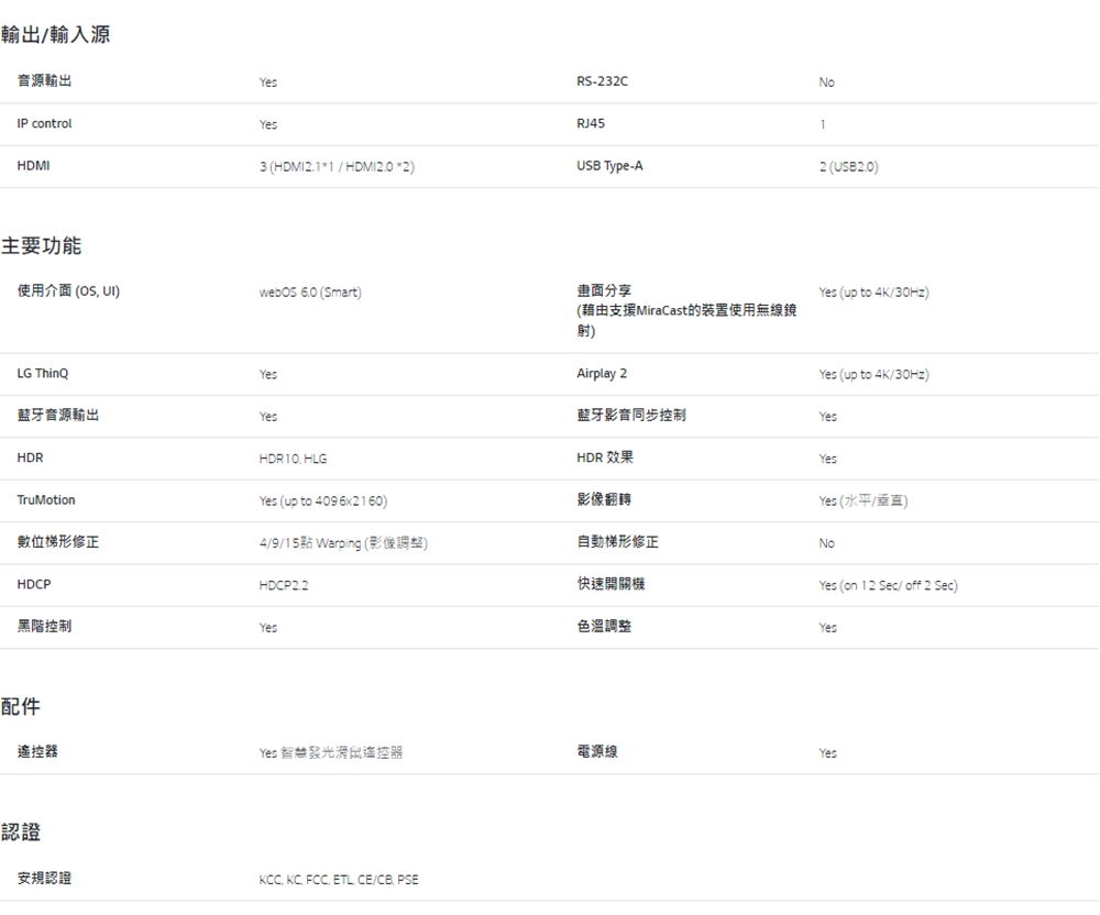 | HDTV相容性 | 3 (HDMI2.1*1 / HDMI2.0 *2) |