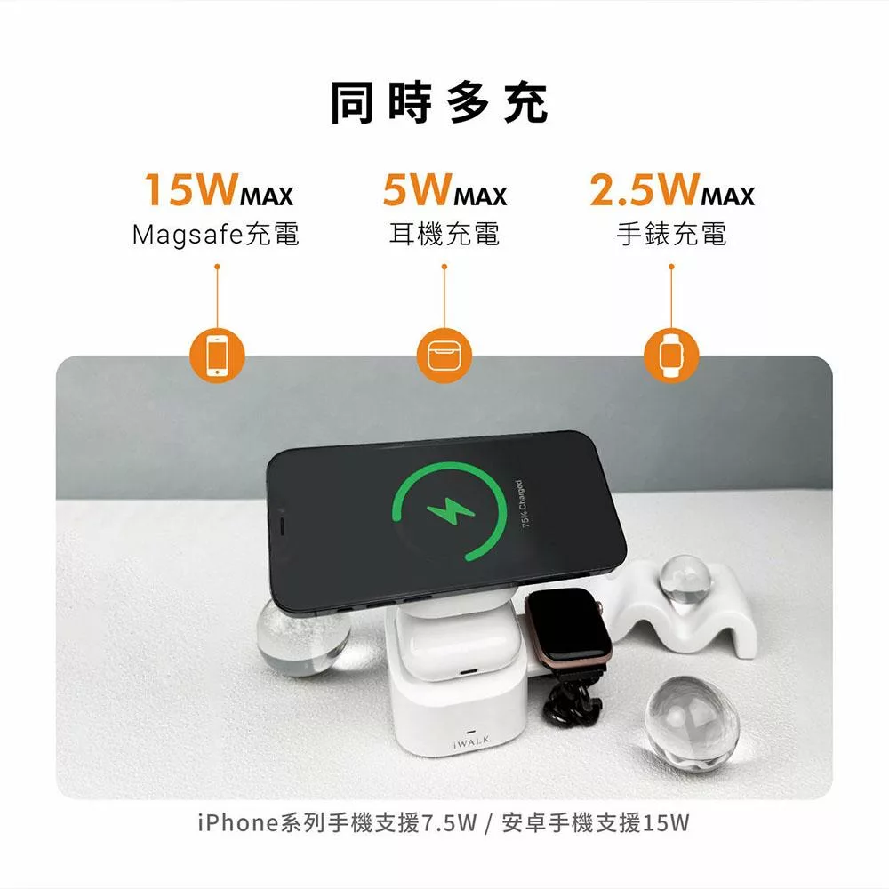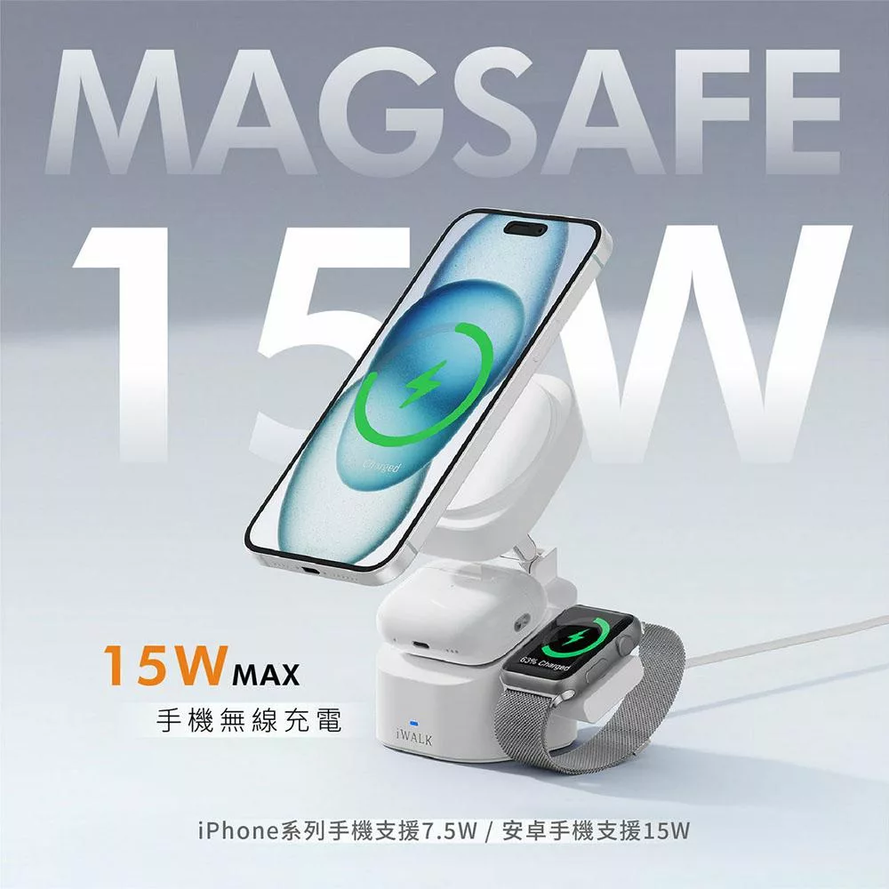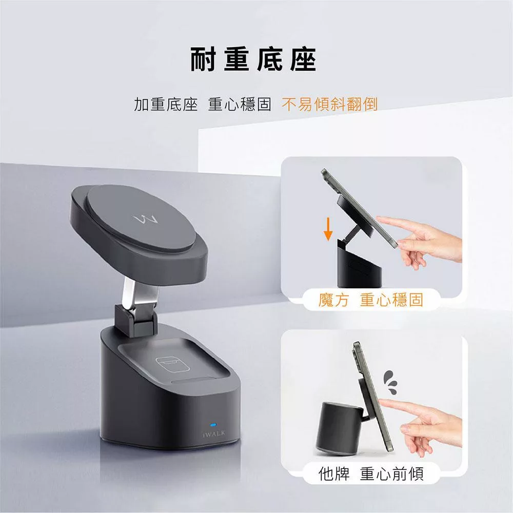 iWALK MXS007 MagSafe 磁吸無線充電器 15W 快充 折疊支架 多裝置適用 手機耳機充電神器