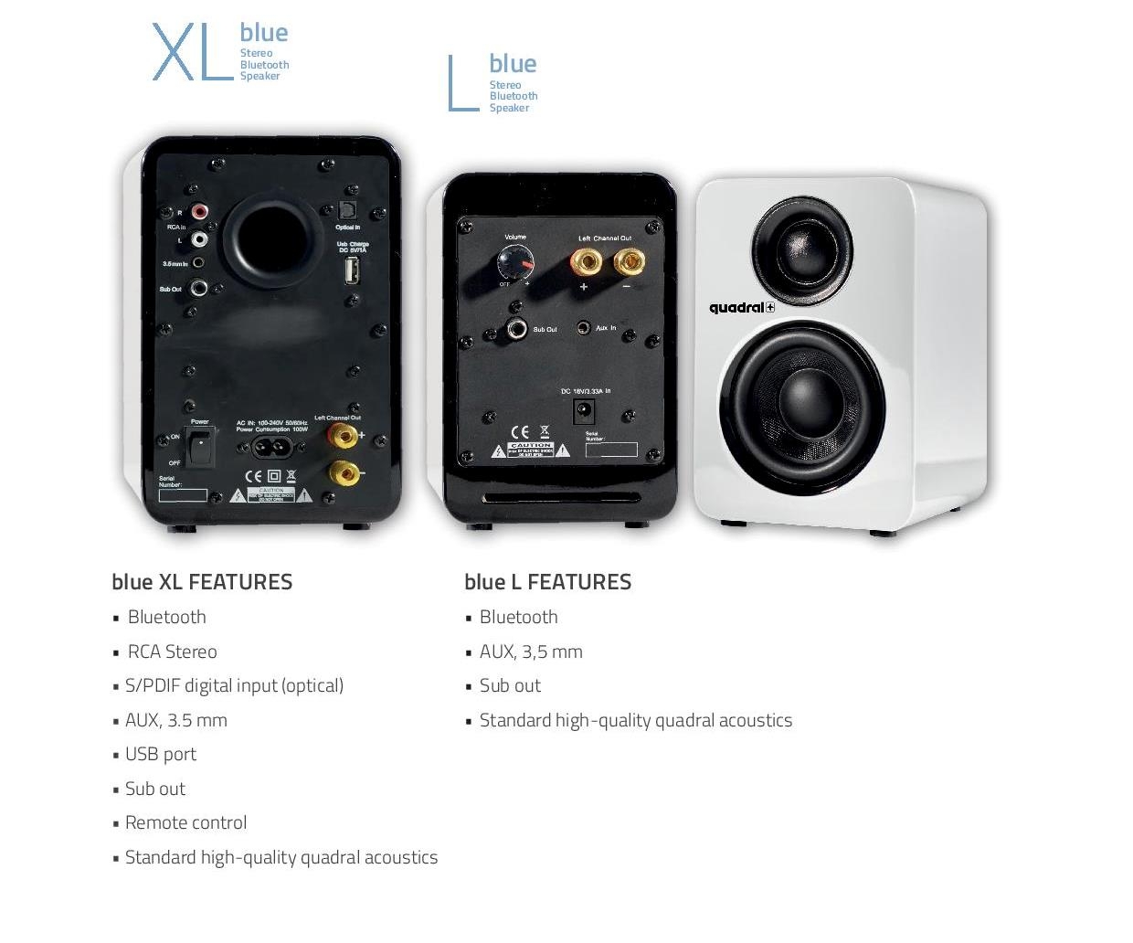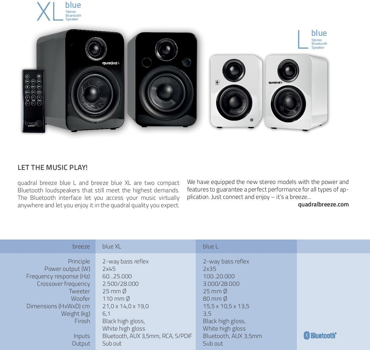 Quadral BREEZE BLUE L 組合式音響,支援藍芽連線與單曲播放,無WiFi需求。尺寸僅15.5×10.5×13.5cm,重量7公斤,適合居家或戶外使用。顏色選擇黑色系或白色系,配件包含喇叭與3.5mm連線線,中國製造,享1年保固。完美結合便利與音質,Quadral品牌保證高品質藍芽喇叭體驗。