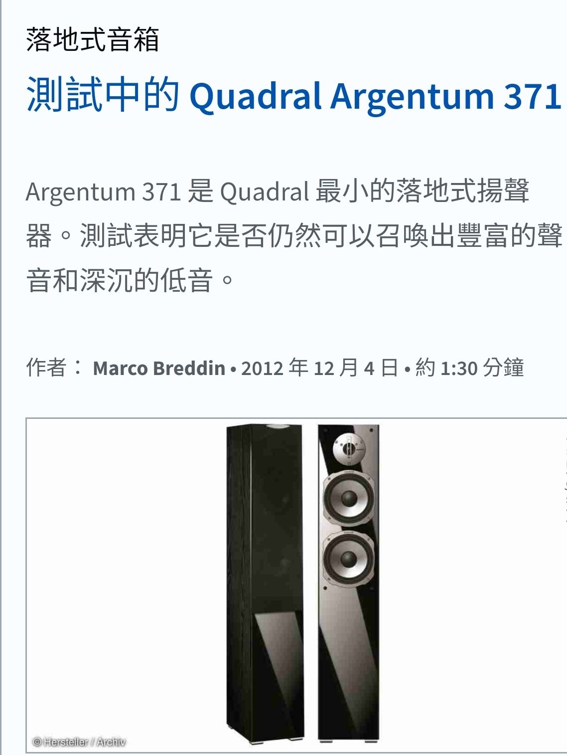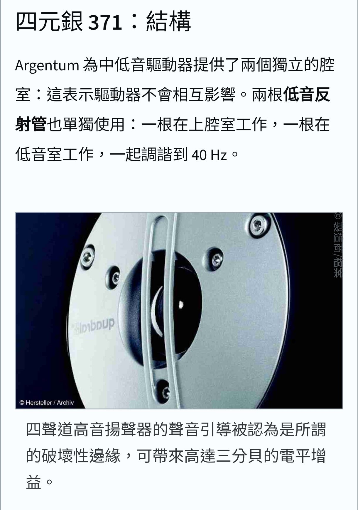 Quadral Argentum 371 劇院落地型喇叭,白色系設計,尺寸18.5×96×29cm,重量13.95KG,適合主喇叭及左右聲道,提供優異音效體驗。無WiFi及藍芽,1年保固,中國產地,配件依原廠規定。完美選擇家庭劇院系統,提升影音享受。