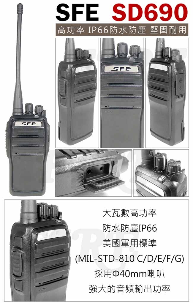 SFE SD690 無線電對講機主機 16KM 通話距離 430-432MHz 頻率 50組記憶頻道 NCC認證 專業通訊裝置