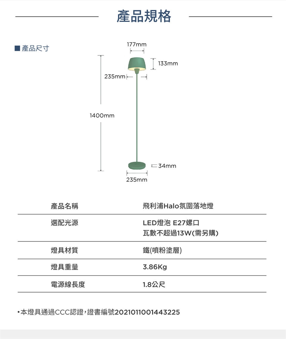 | 商品名稱 | Philips 飛利浦 44102 Halo氛圍落地燈-黑色(PW015) |