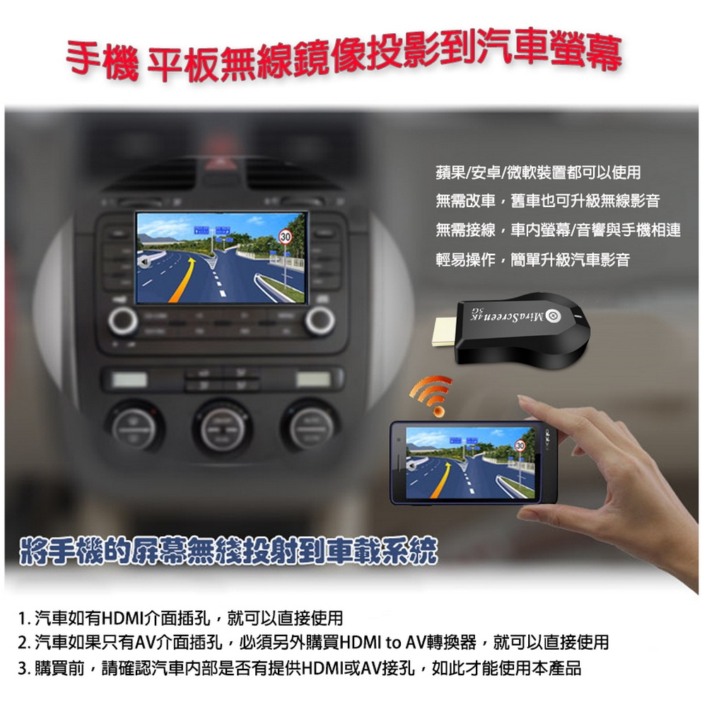 | 內容物 | 鏡像器x1,WiFi模組線x1,4大好禮:充電器x1+HDMI線x1+HDMI轉接頭x1+支架x1 |