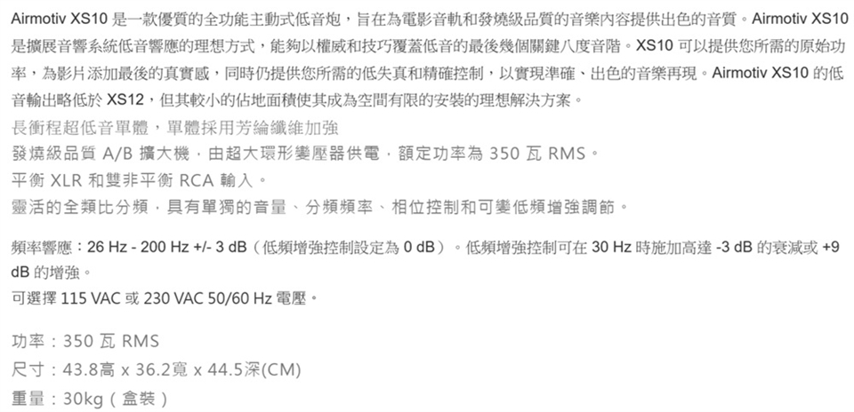 | 型號 | Airmotiv XS10 |