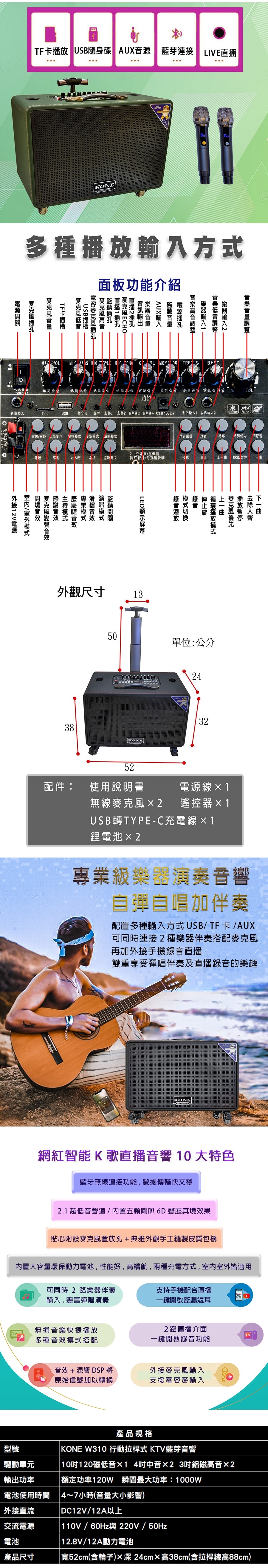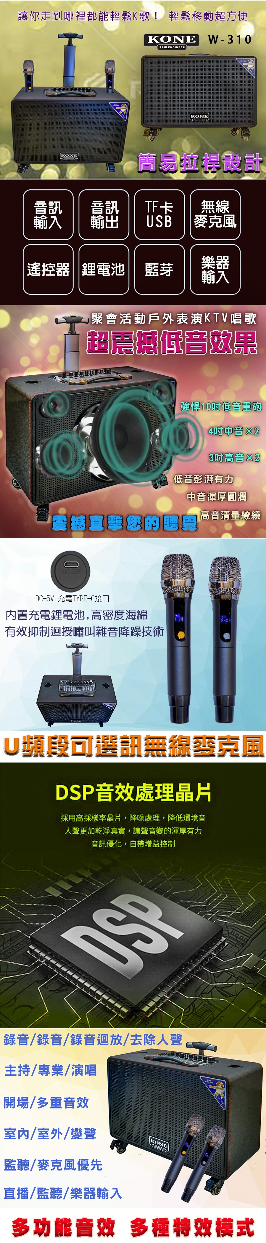 | 商品名稱 | KONE W310 行動拉桿式KTV多功能 藍芽音響 大功率10吋低音強勁震撼 |