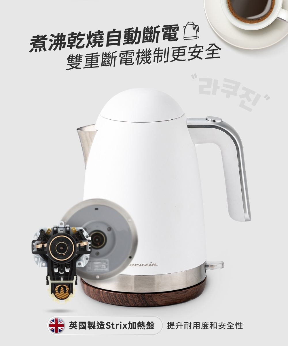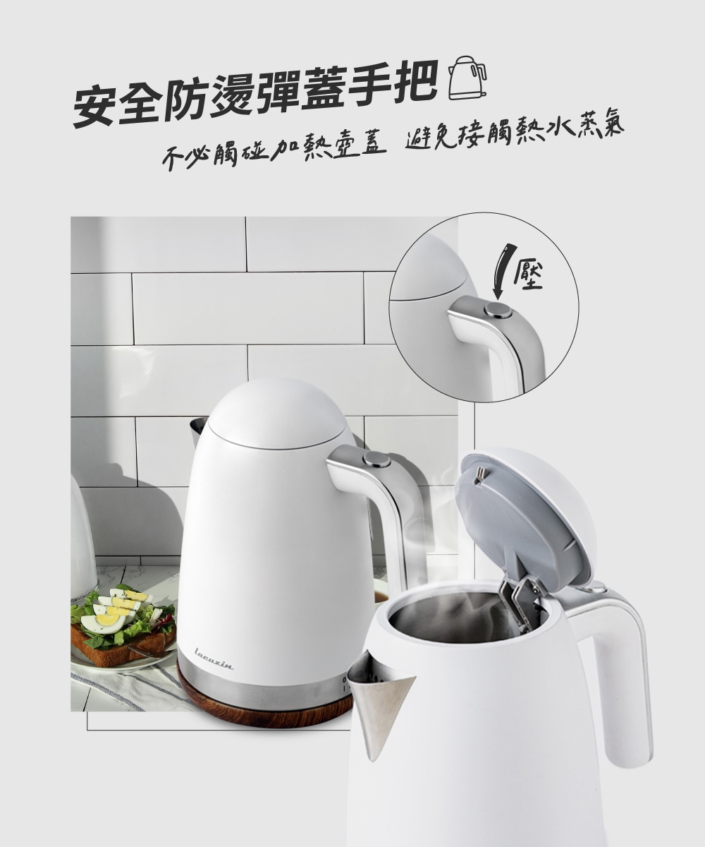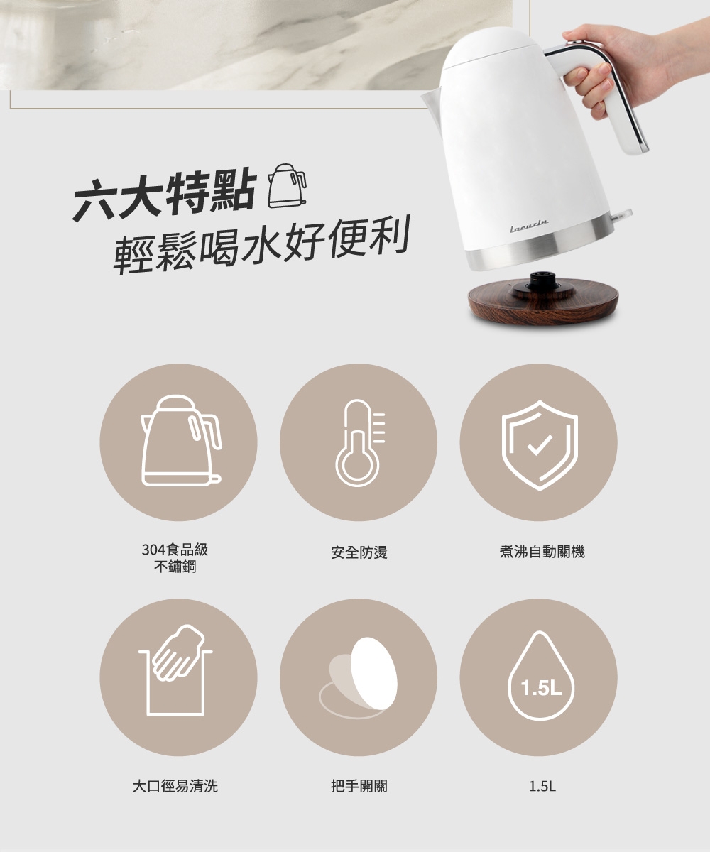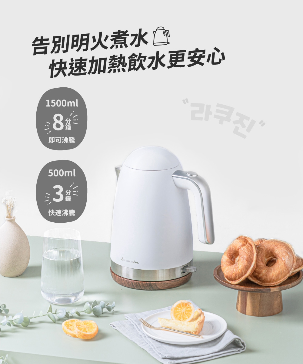 Lacuzin LCZ1802WT 1.8L 304不鏽鋼電熱水壺 900W快速沸騰 臺灣BSMI認證 家用煮水器